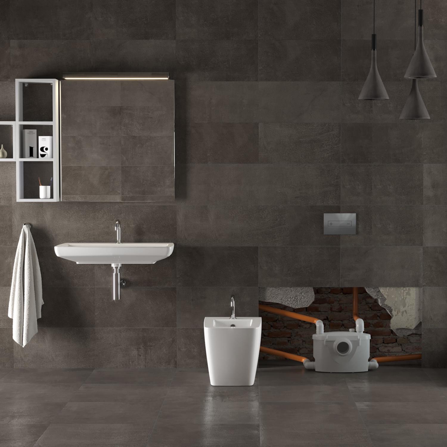 Scatola in acciaio rivestibile composta da 4 elementi che nascondono il prodotto in modo da poter creare un ambiente bagno esteticamente gradevole.