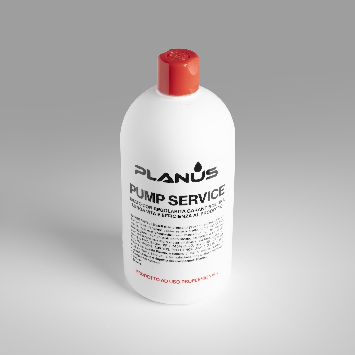 La manutenzione regolare è essenziale per garantire una lunga vita e l’efficienza al prodotto. I liquidi disincrostanti presenti sul mercato solitamente contengono sostanze acide altamente aggressive, in molti casi non compatibili con l’apparecchio, che vanno a danneggiare i componenti dello stesso. Proprio per questo Planus, a seguito di test e ricerche svolte, ha studiato PUMP SERVICE, la formulazione ideale che garantisce: