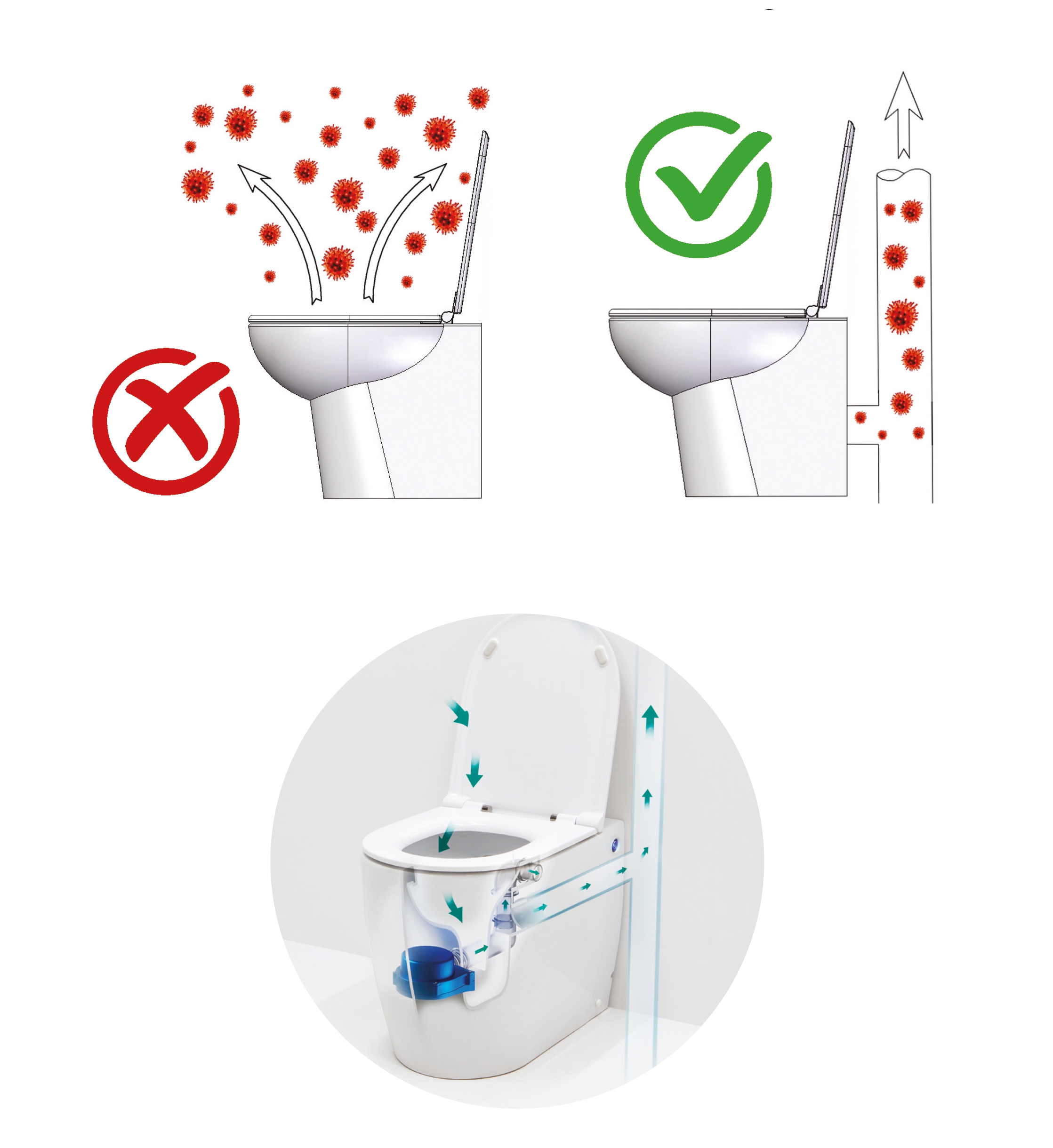 Aspirando l’aria alla fonte, il wc così progettato combatte sia la diffusione
